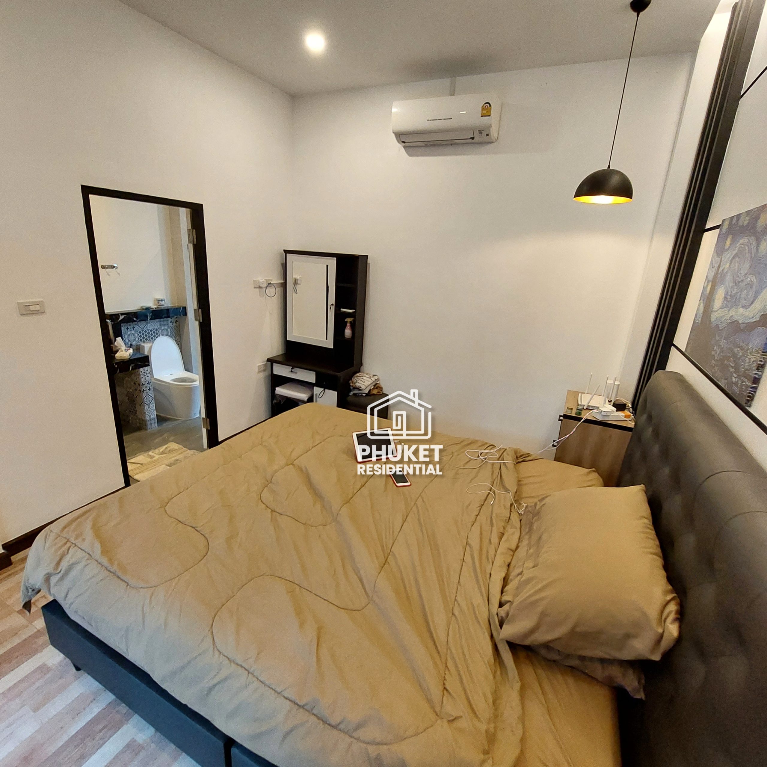 The villa has 3 bedrooms with en-suite bathroom, and a seperate guest toilet. The 4th bedroom is currently used as an office.