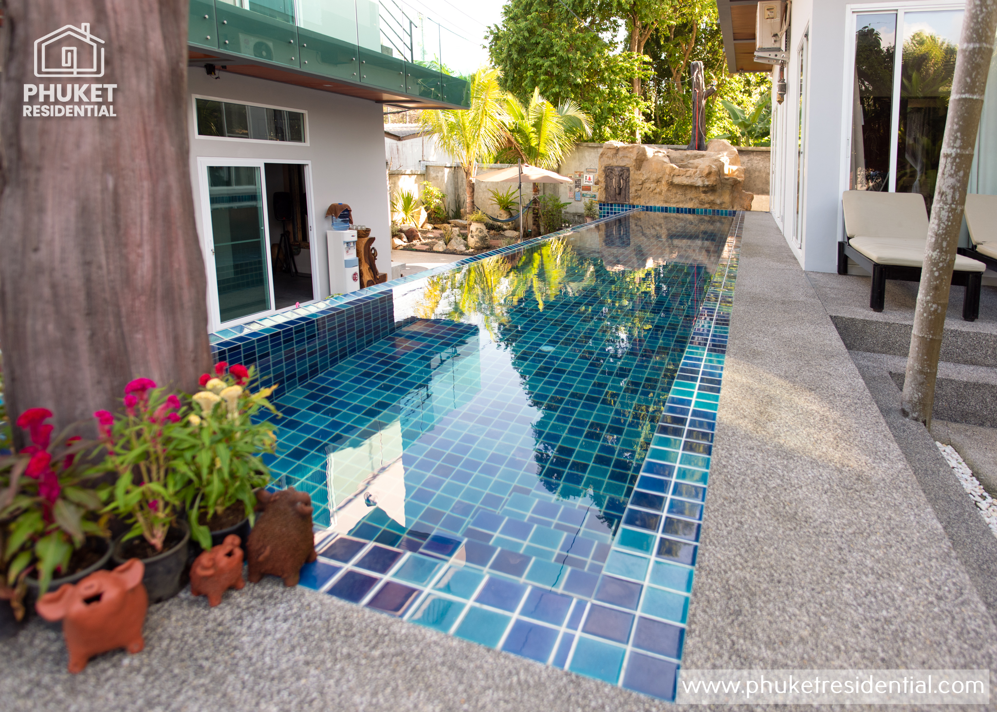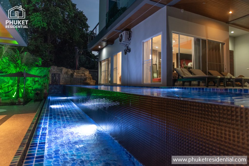 This nicely decorated (Google Home) 8 bedroom pool villa is situated in the Sai Yuan area between Rawai Beachfront and Nai Harn, with the great restaurants and easy access to Rawai and a short drive to the most spectacular Phuket beach, Nai Harn.