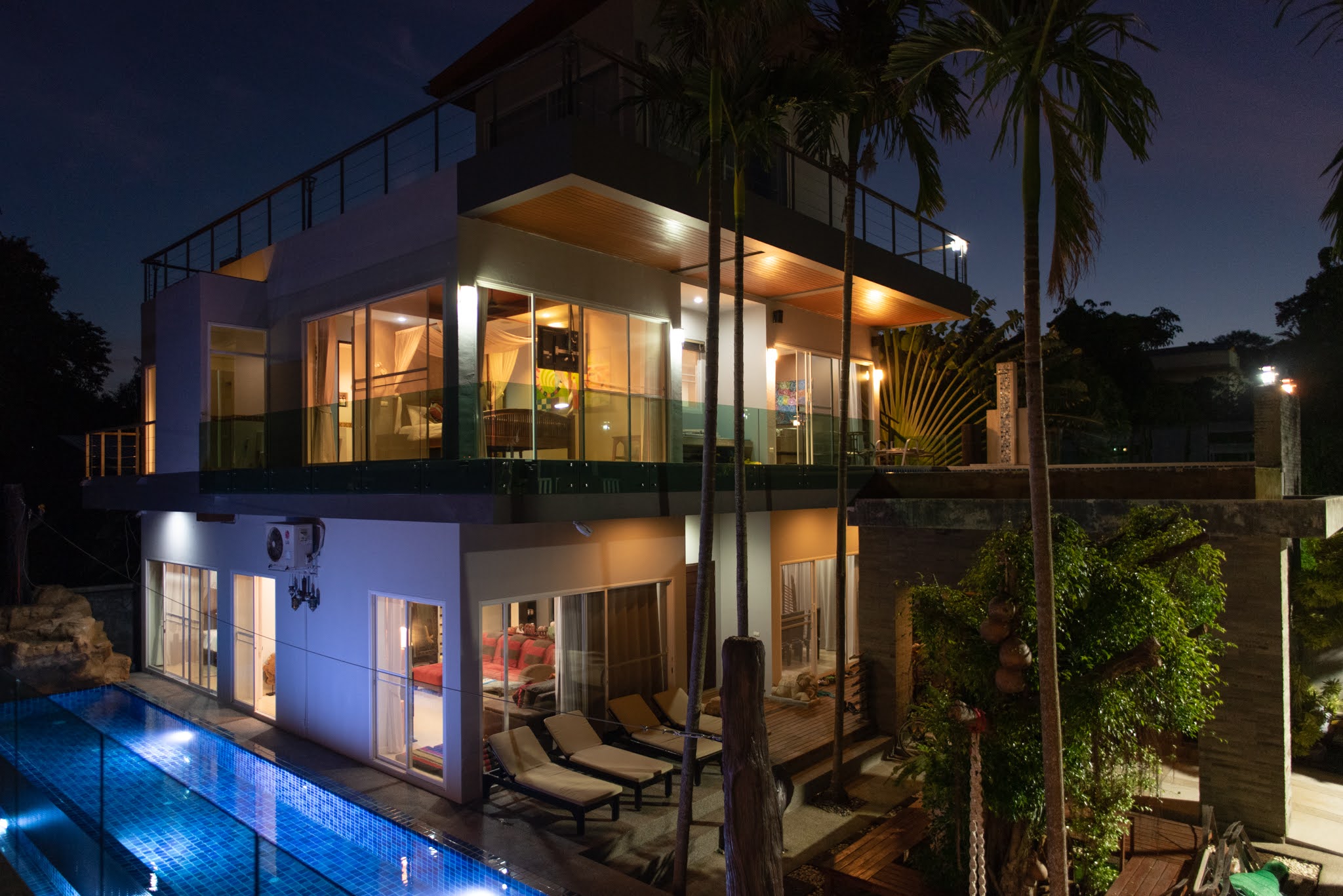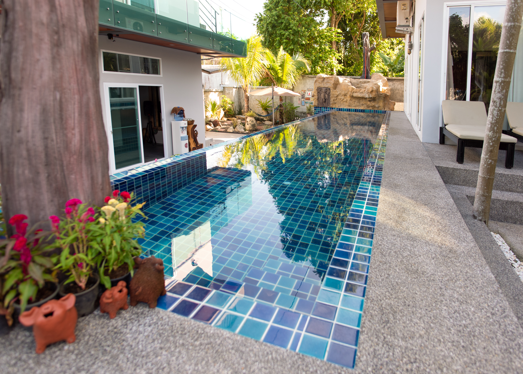 This nicely decorated (Google Home) 8 bedroom pool villa is situated in the Sai Yuan area between Rawai Beachfront and Nai Harn, with the great restaurants and easy access to Rawai and a short drive to the most spectacular Phuket beach, Nai Harn.