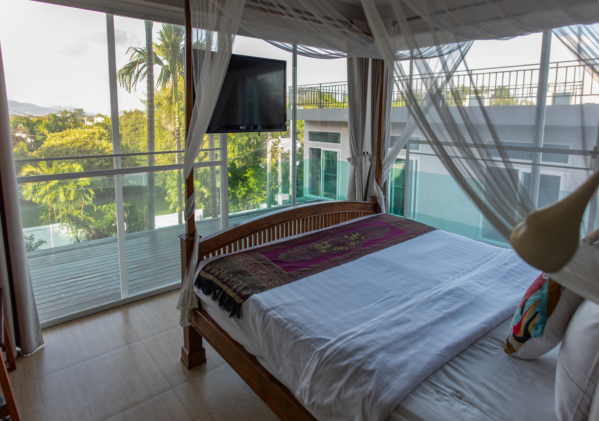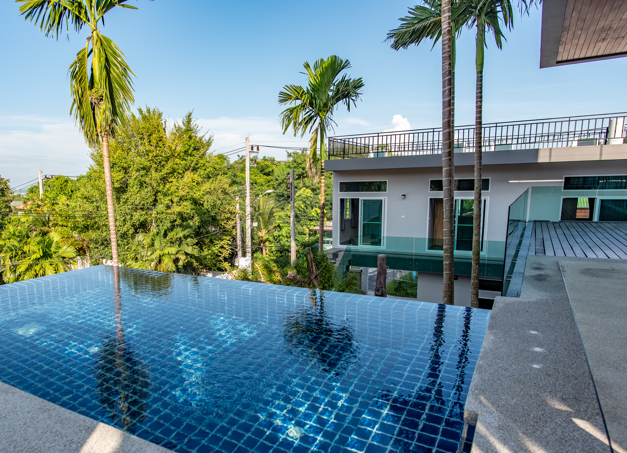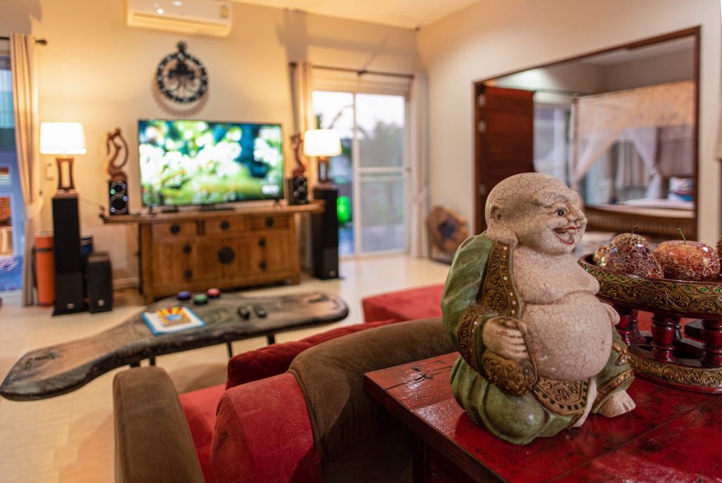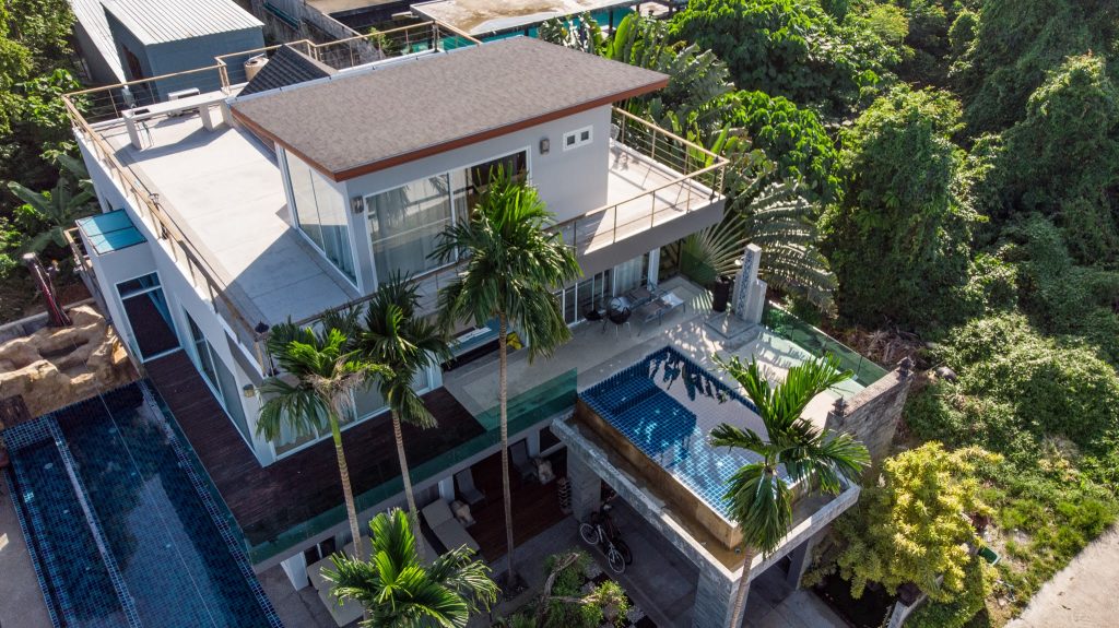 On the 2nd floor is a fifth bedroom with ensuite bathroom and this room has great sea views. Above this floor is the rooftop terrace with wonderful sea and mountain views. Big Buddha can be seen from here, truly inspirational.