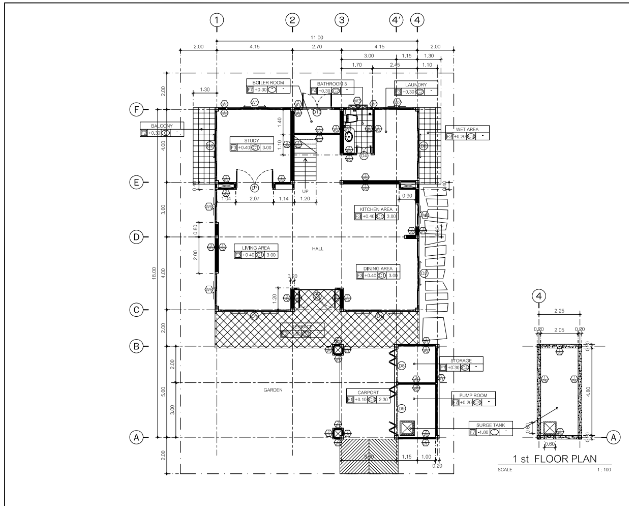 On the first floor of this building are three bedrooms, all with ensuite bathrooms. The second swimming pool is located in the garden area. There is a storage room and pump room right next to the carport.