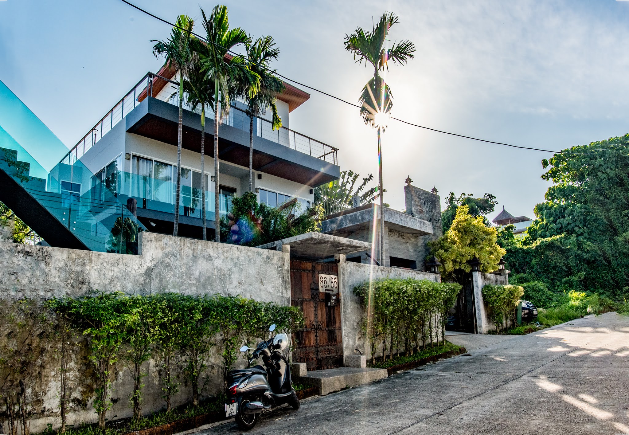 This unique villa is actually two separate buildings with a combination of eight bedrooms, seven bathrooms, two swimming pools, a rooftop terrace and two access carports.