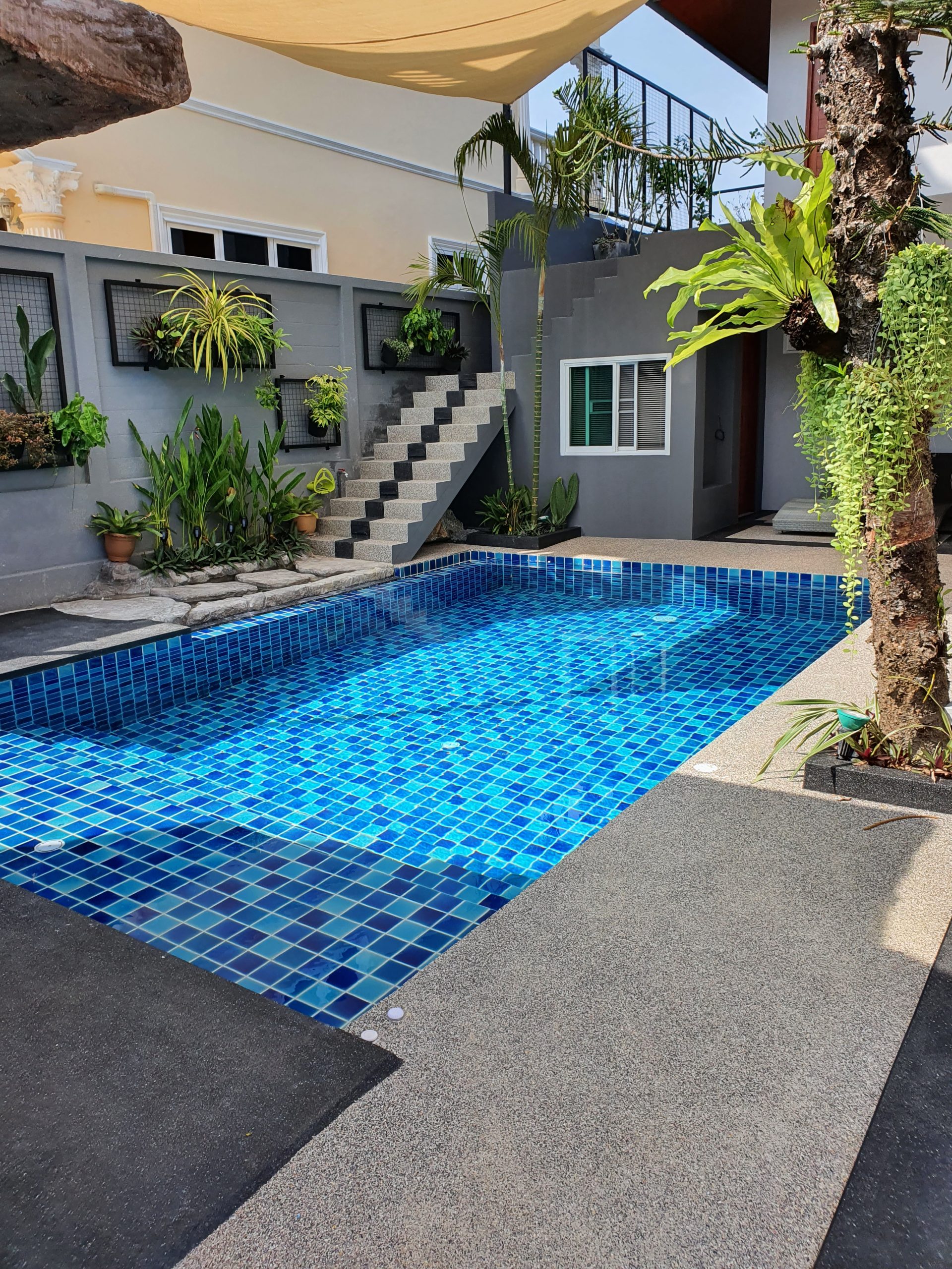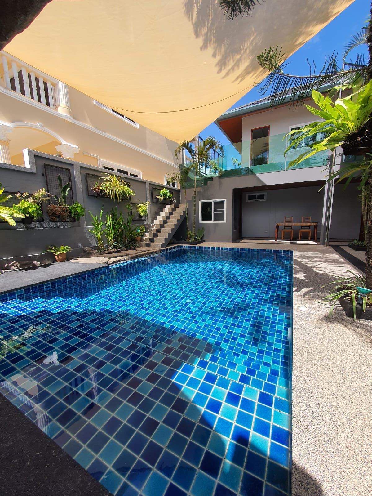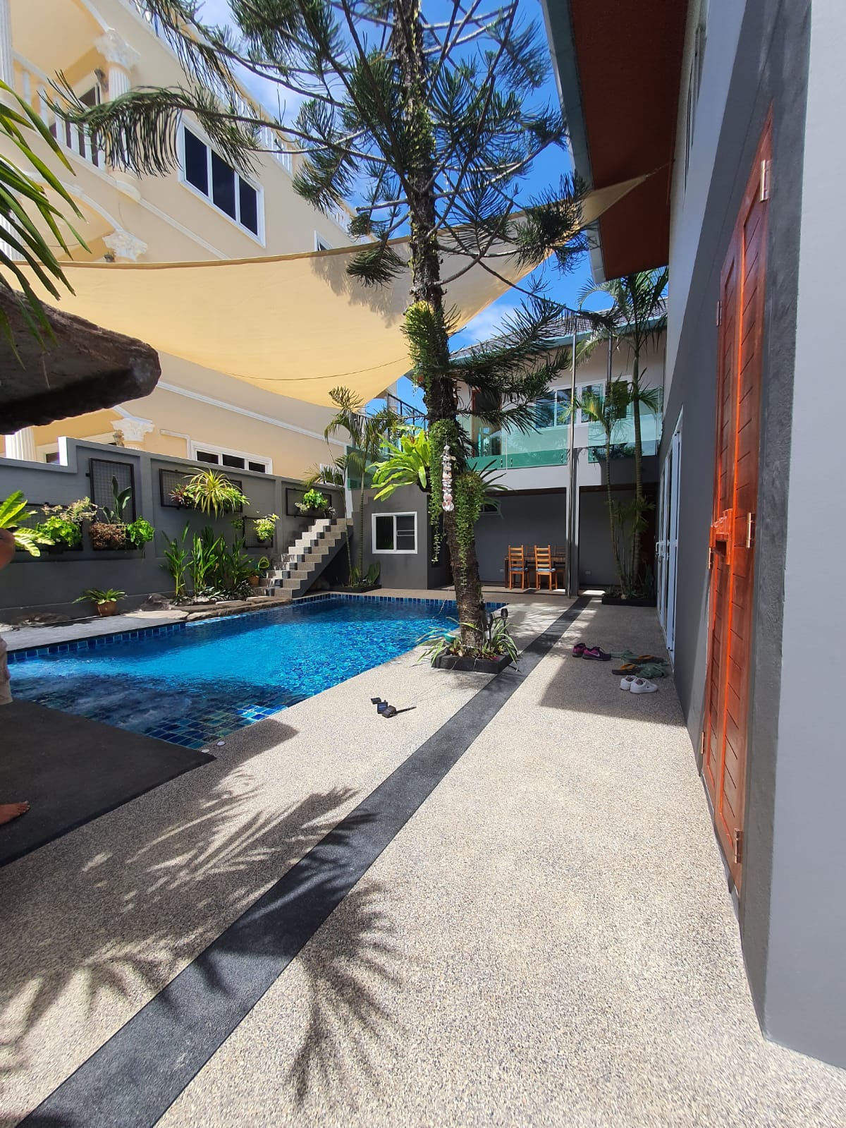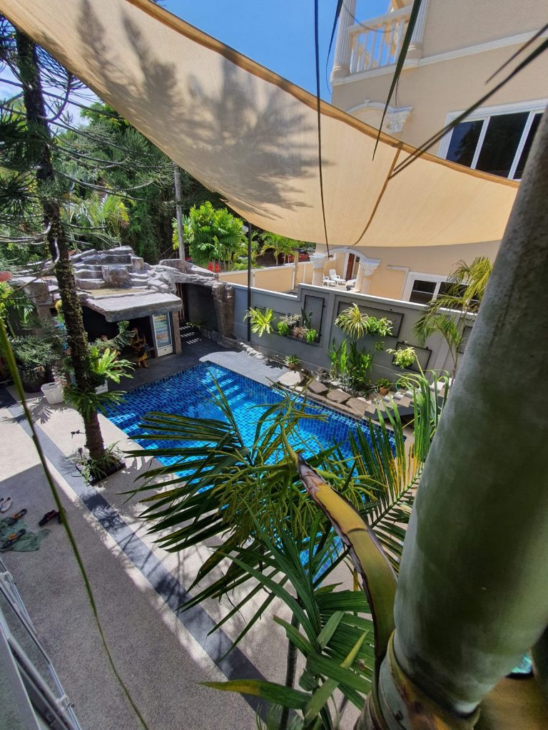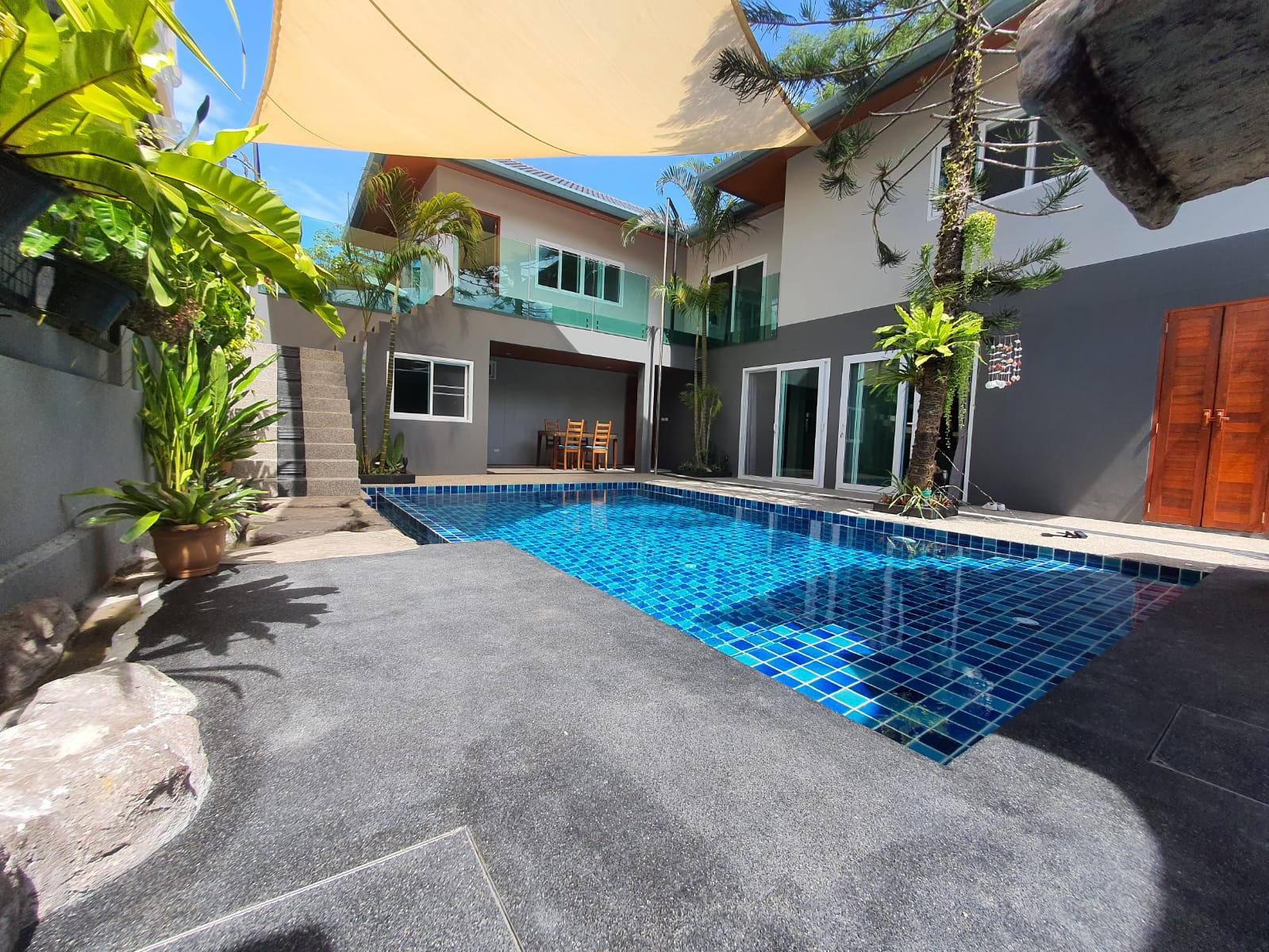 – Huge sail over pool area for privacy