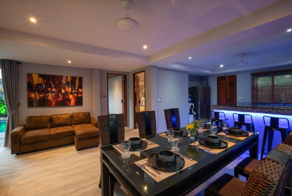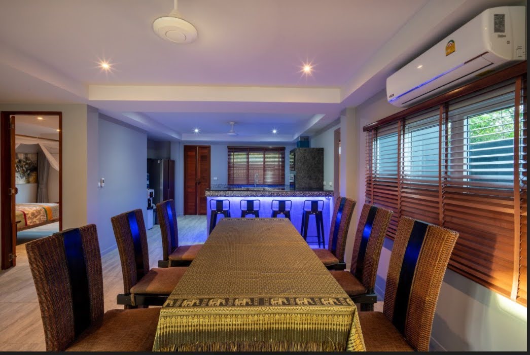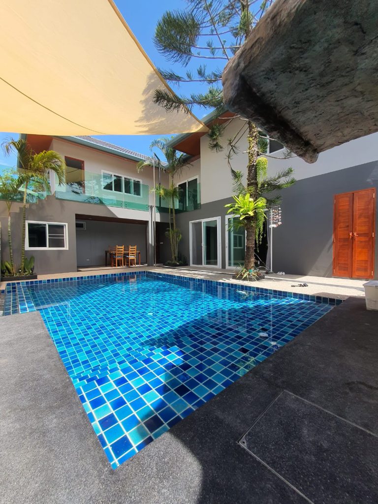 This 2 storey property in central Rawai is a 440M2 villa with 4 bedrooms and 5 bathrooms, that is available for sale, and was completed in februari 2022.