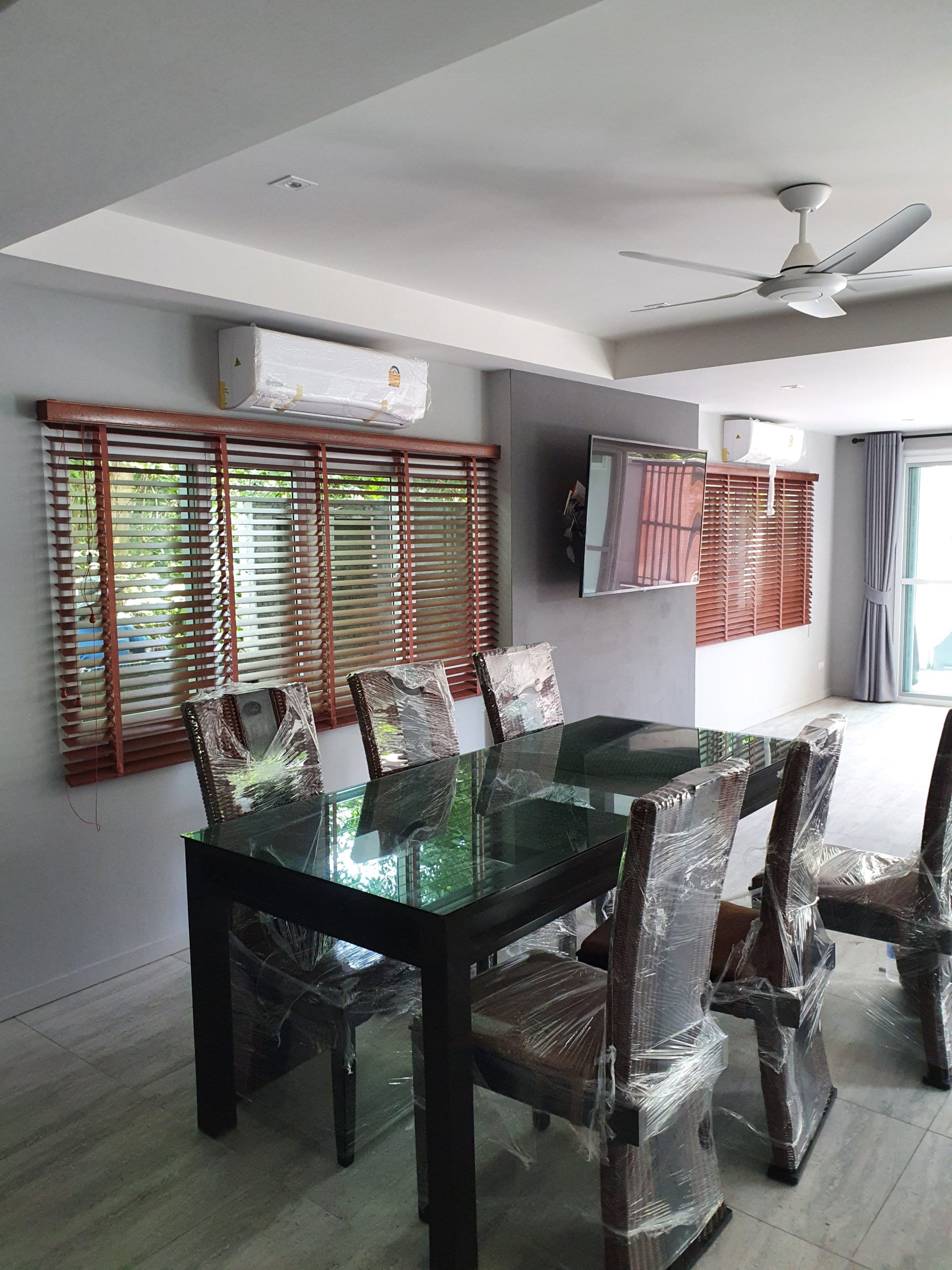 – Dining table and sofas