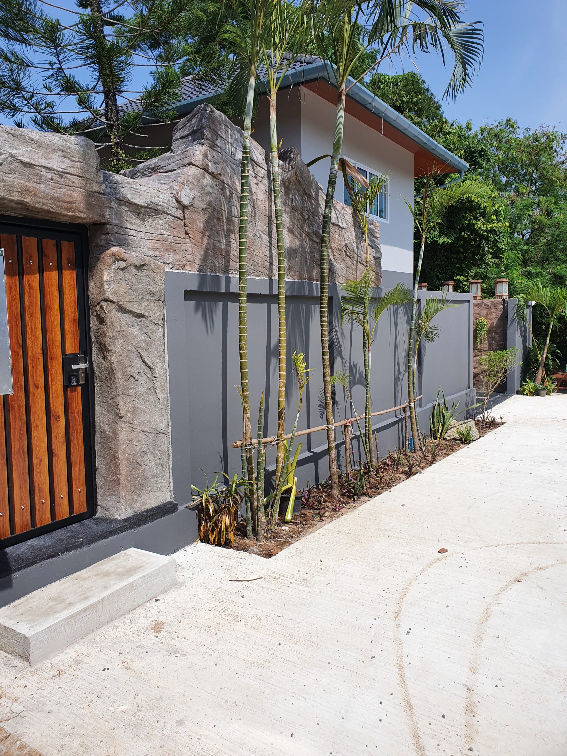 – Modern wall around the garden