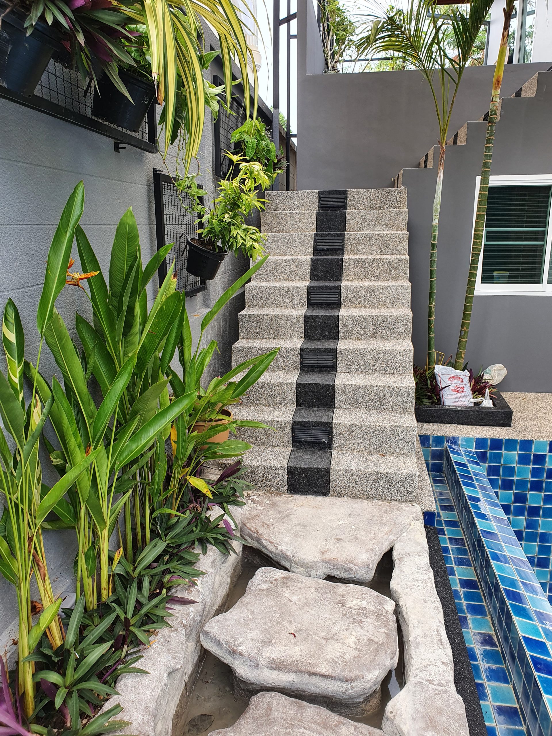 – Incredible fountain over the pool